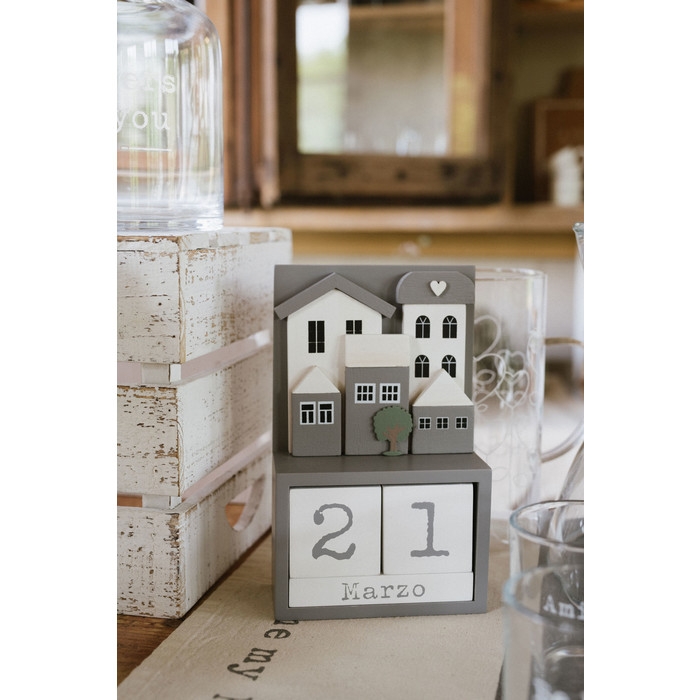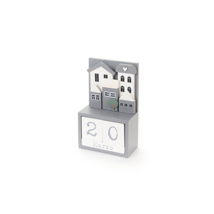 Calendario perpetuo in legno dal design semplice ed elegante, perfetto per decorare scrivania, mensole o ambienti della casa con un tocco naturale.
