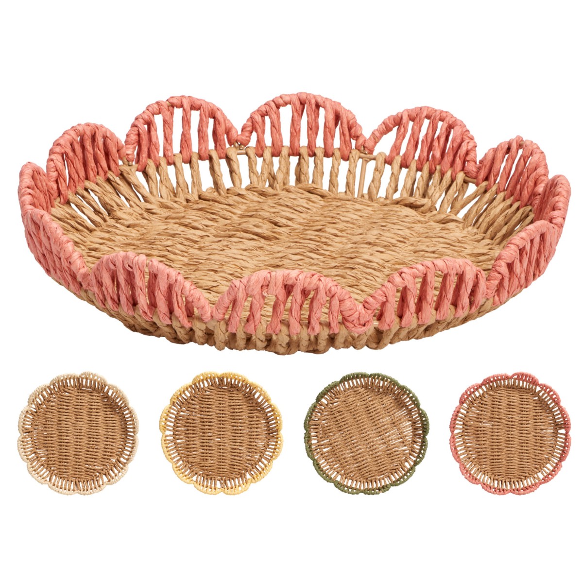 Cesto in rattan con bordo colorato, perfetto per organizzare la casa con un tocco di stile naturale e moderno.