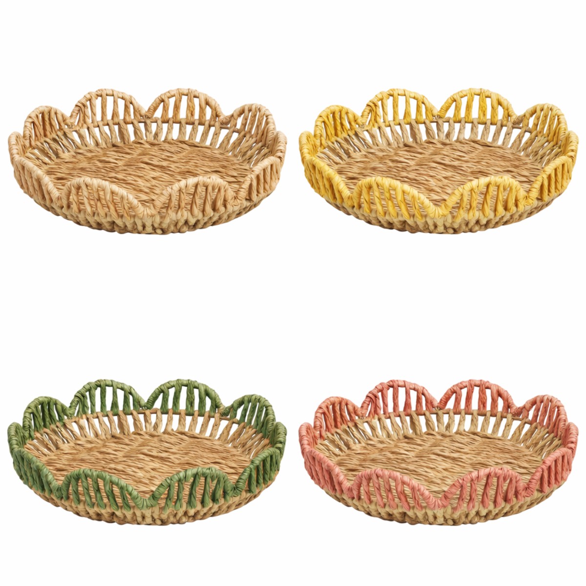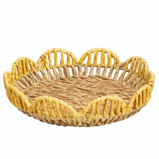Cesto in rattan naturale con elegante bordo colorato, perfetto per aggiungere un tocco di stile e ordine a qualsiasi ambiente.