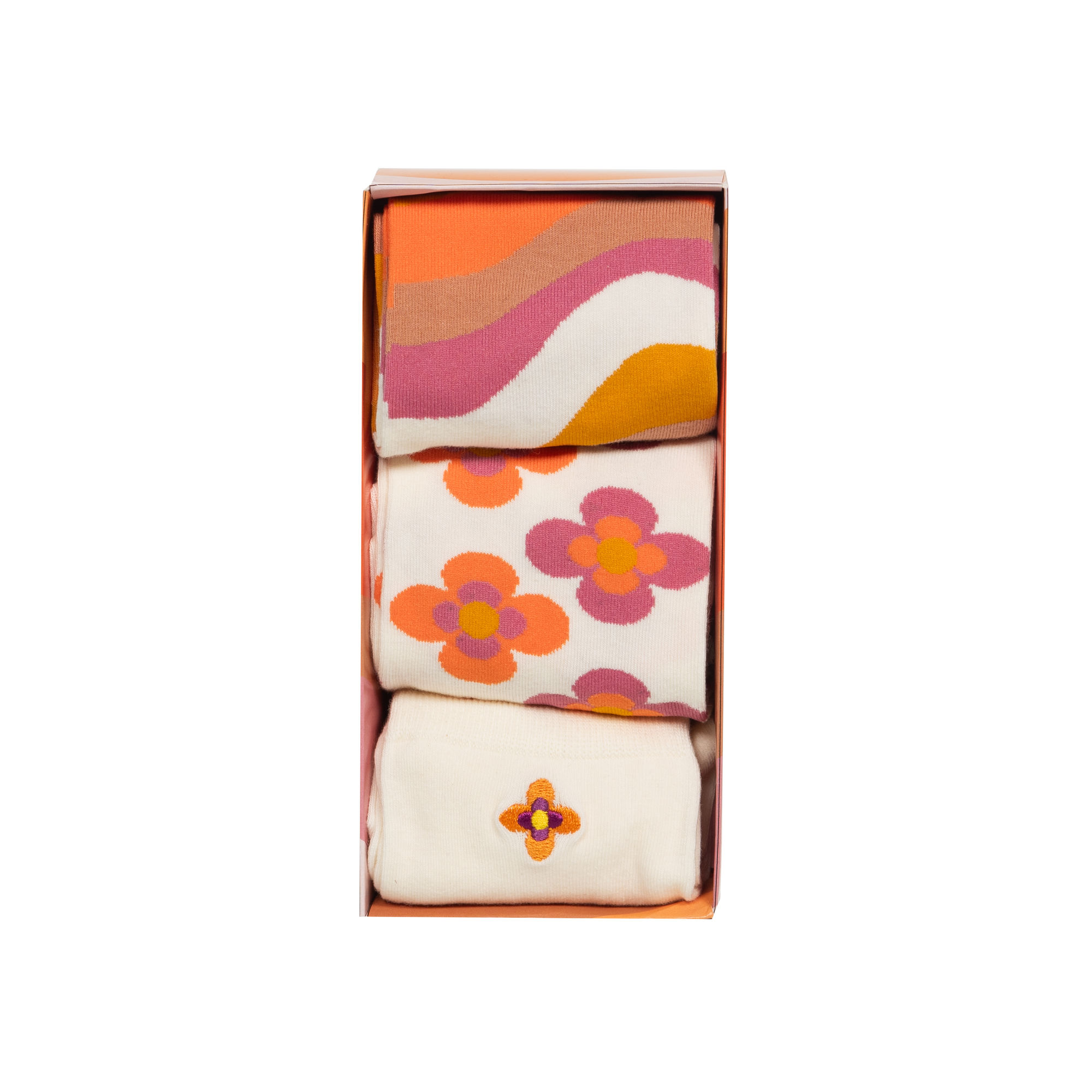 Shop Accessori COFANETTO SET TRE CALZE ARANCIO Shop Accessori COFANETTO SET TRE CALZE ARANCIO Punto Verde COFANETTO SET TRE CALZE ARANCIO 19,90 € IVA inclusa Disponibile COFANETTO SET TRE CALZE ARANCIO quantità Aggiungi al carrello Aggiungi alla lista dei desideriSet di 3 paia di calzini da donna con fantasia floreale colorata, perfetti per aggiungere un tocco di allegria e stile agli outfit di ogni giorno. Scopri tutte le nostre simpatiche varianti e trova quella che più ti rappresenta! Materiale: 75 % Cotone 23 % Nylon 2 % Elastane Misure Scatola: 37,00 cm x 10,00 cm x 10,00 cm TAGLIA UNICA PER DONNA – WOMAN Disponibile COFANETTO SET TRE CALZE ARANCIO quantità Aggiungi al carrello Aggiungi alla lista dei desideri
