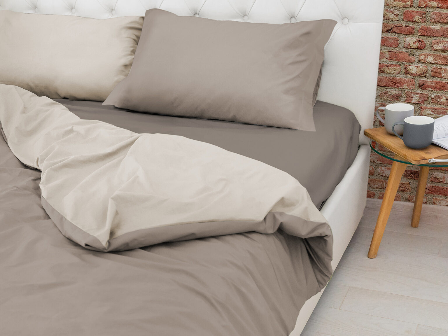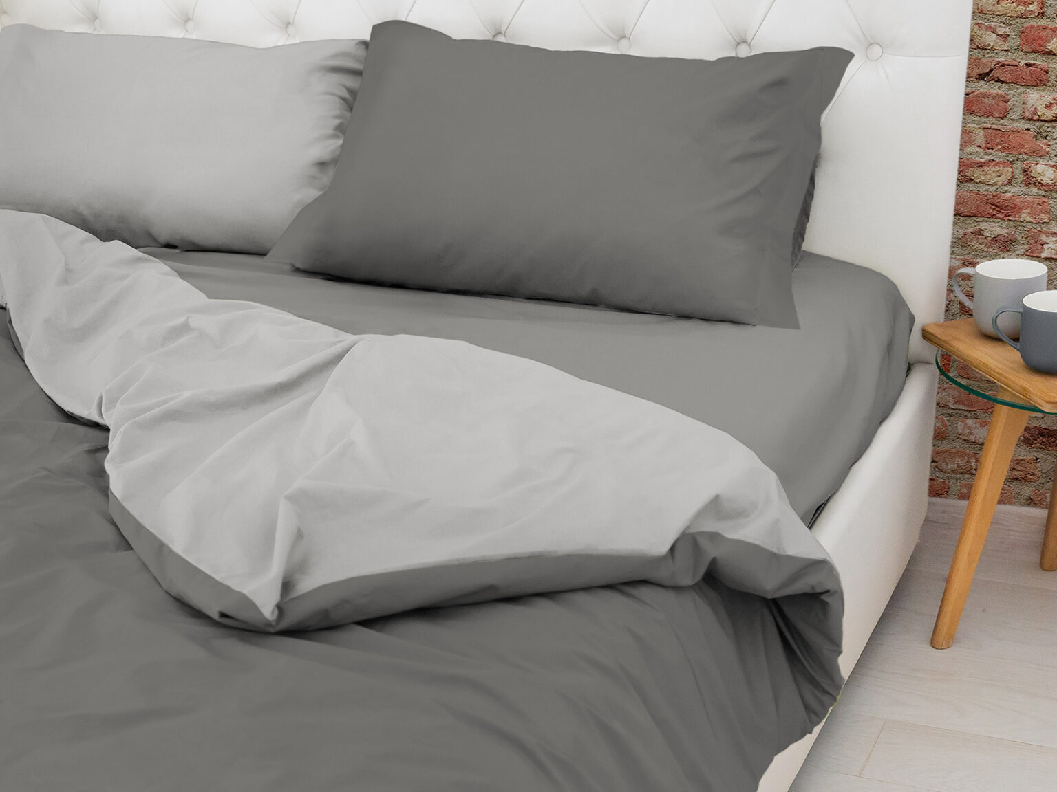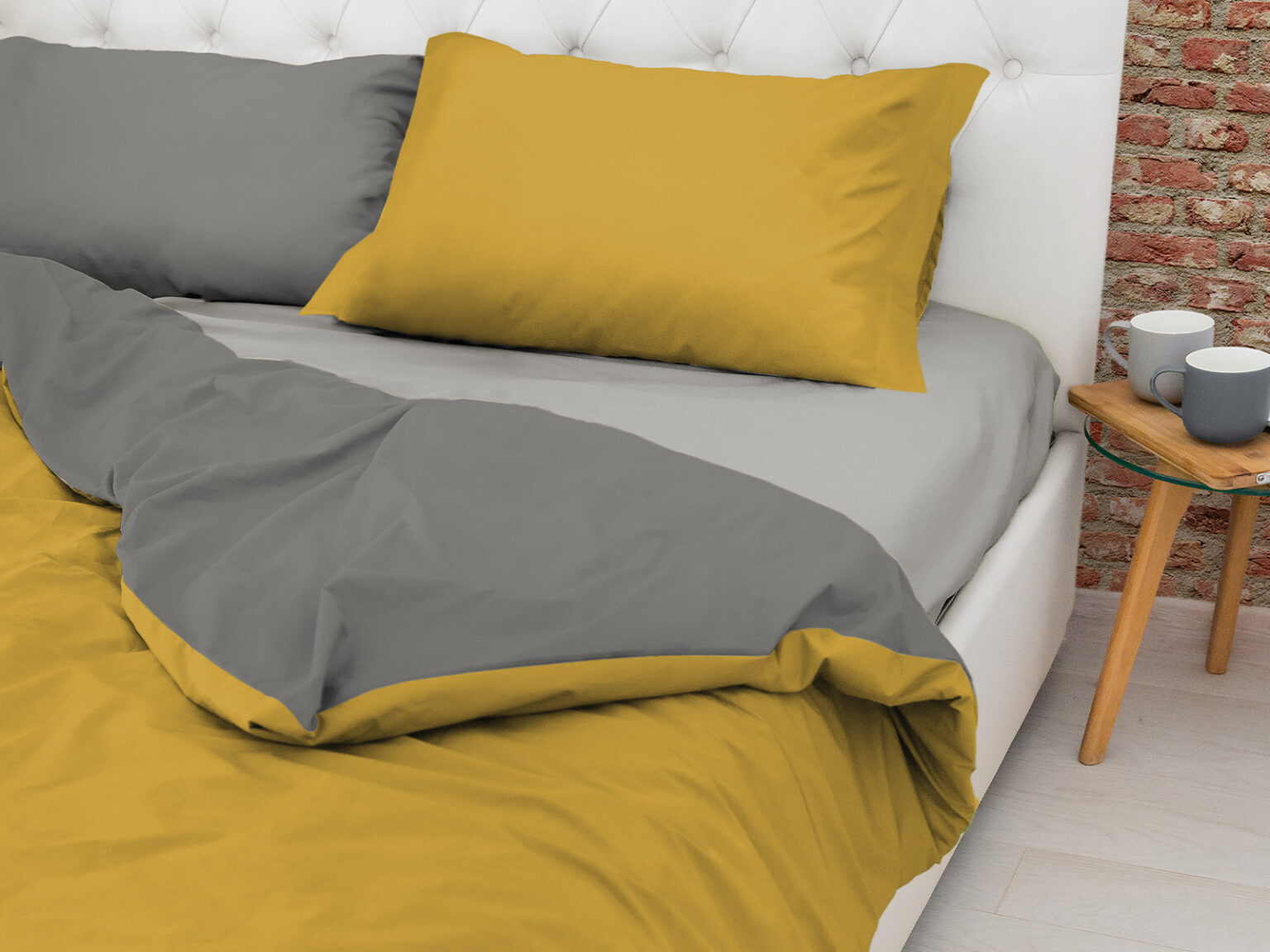Un set copripiumino bicolor che unisce semplicità e carattere, completato da una federa coordinata.
