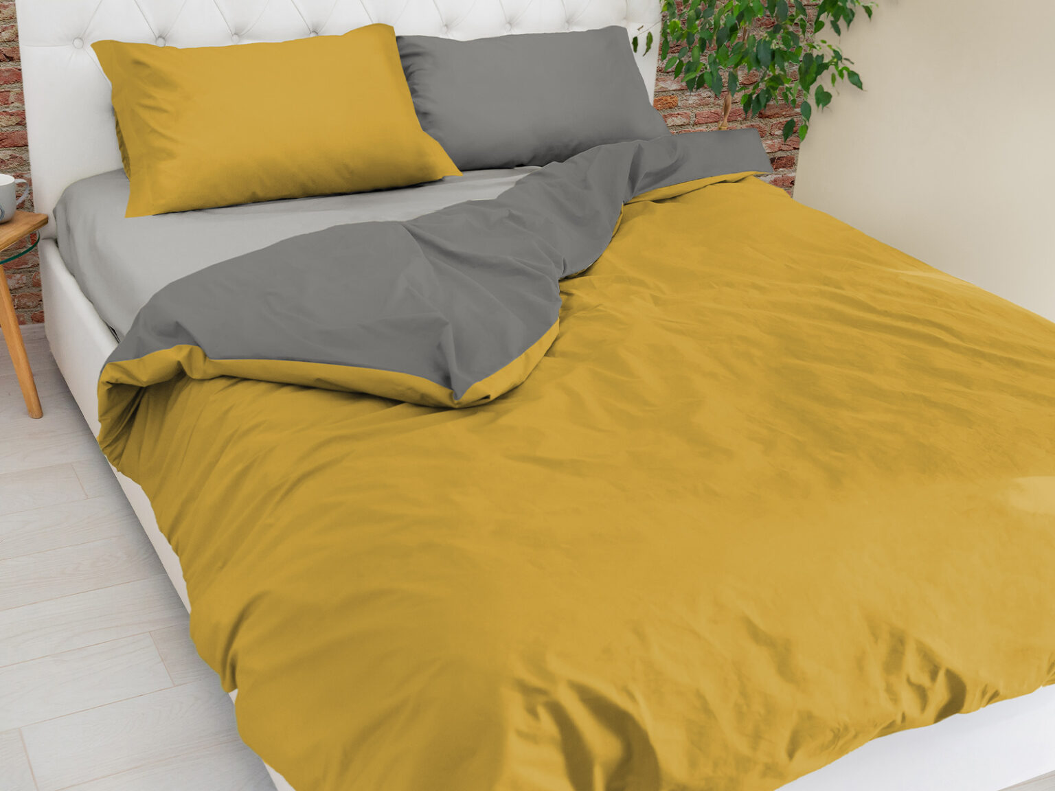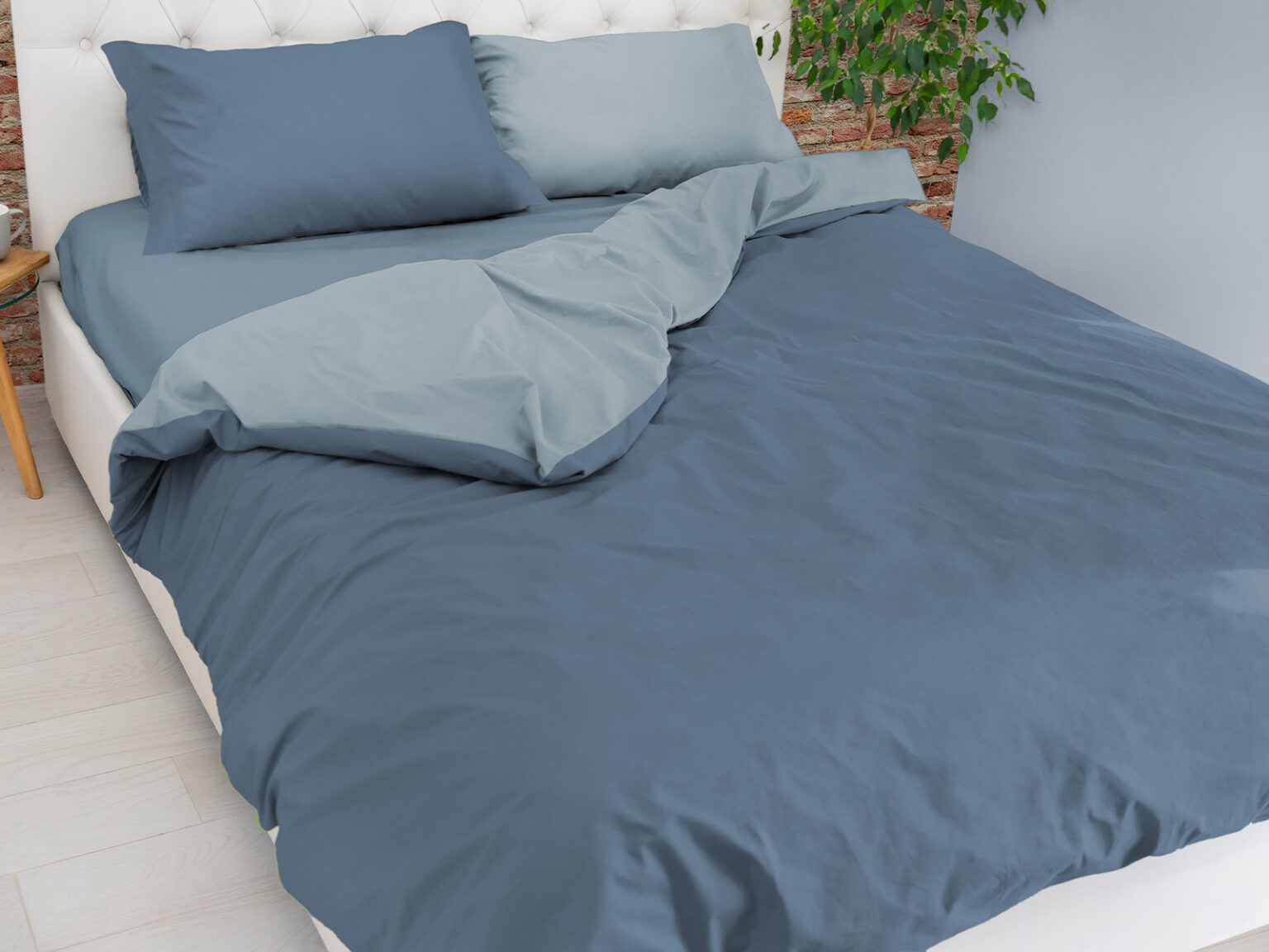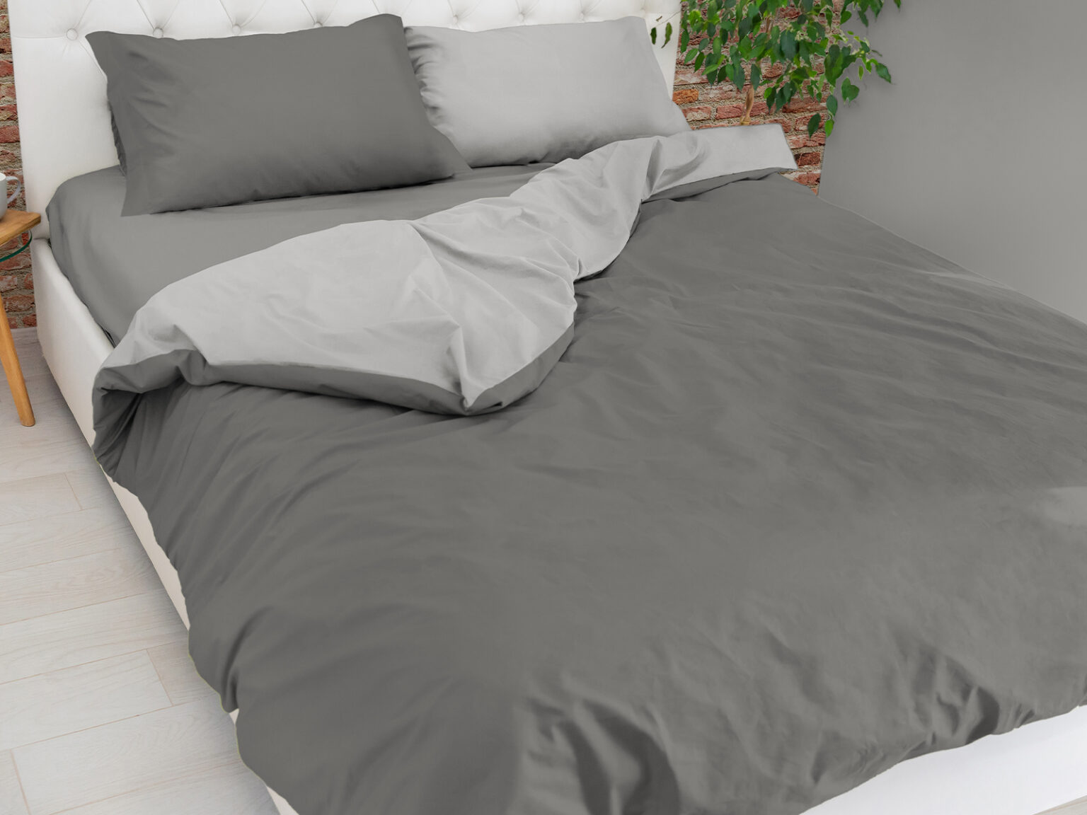 Un set copripiumino bicolor che unisce semplicità e carattere, completato da una federa coordinata.