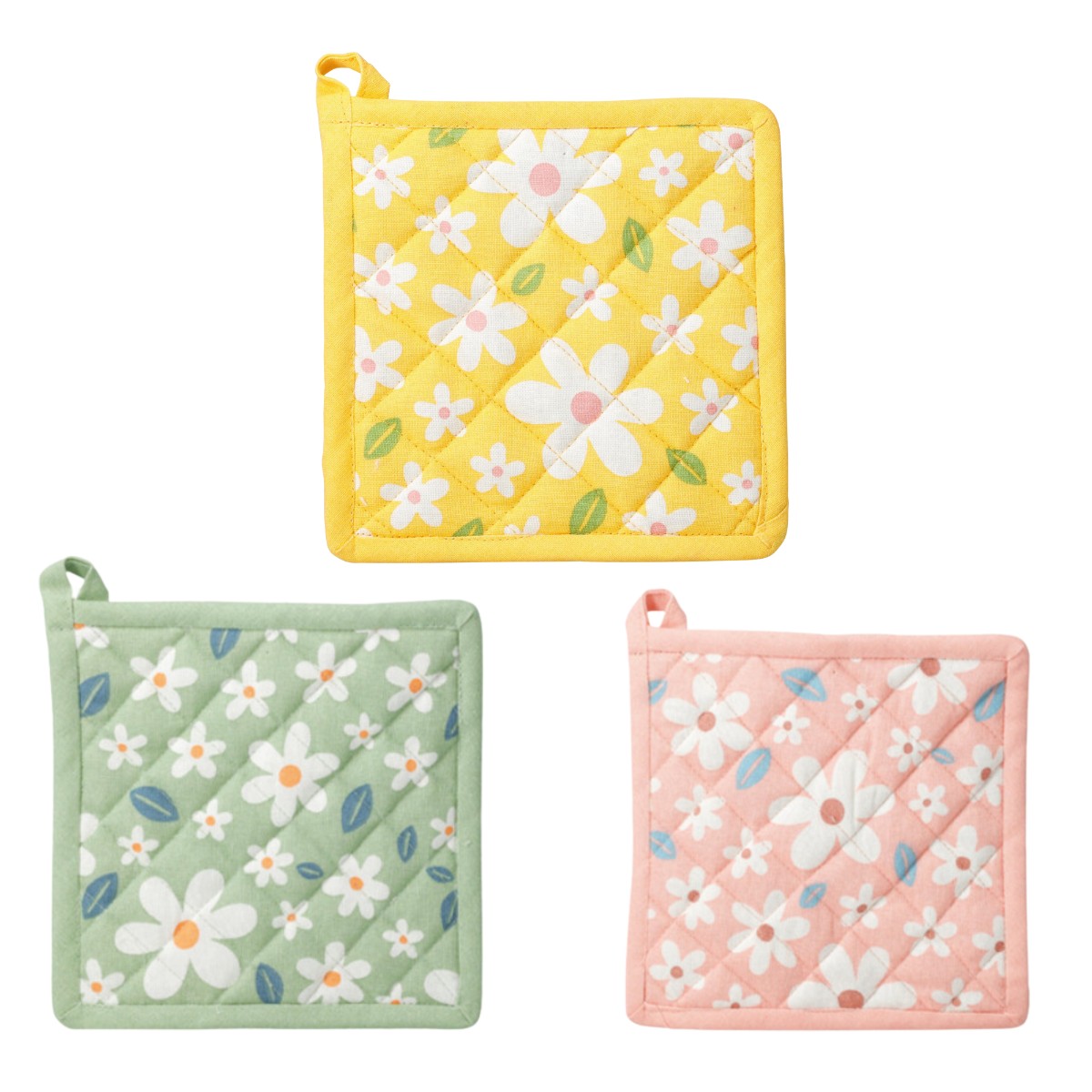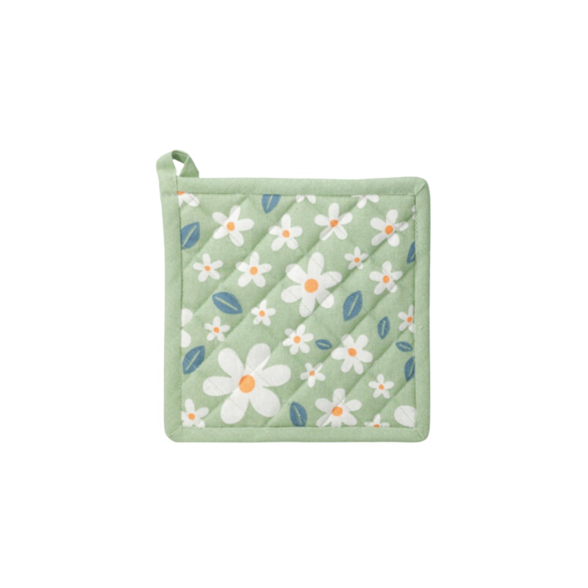 Presina da forno colorata con decorazione a margherite, ideale per portare allegria e stile in cucina.