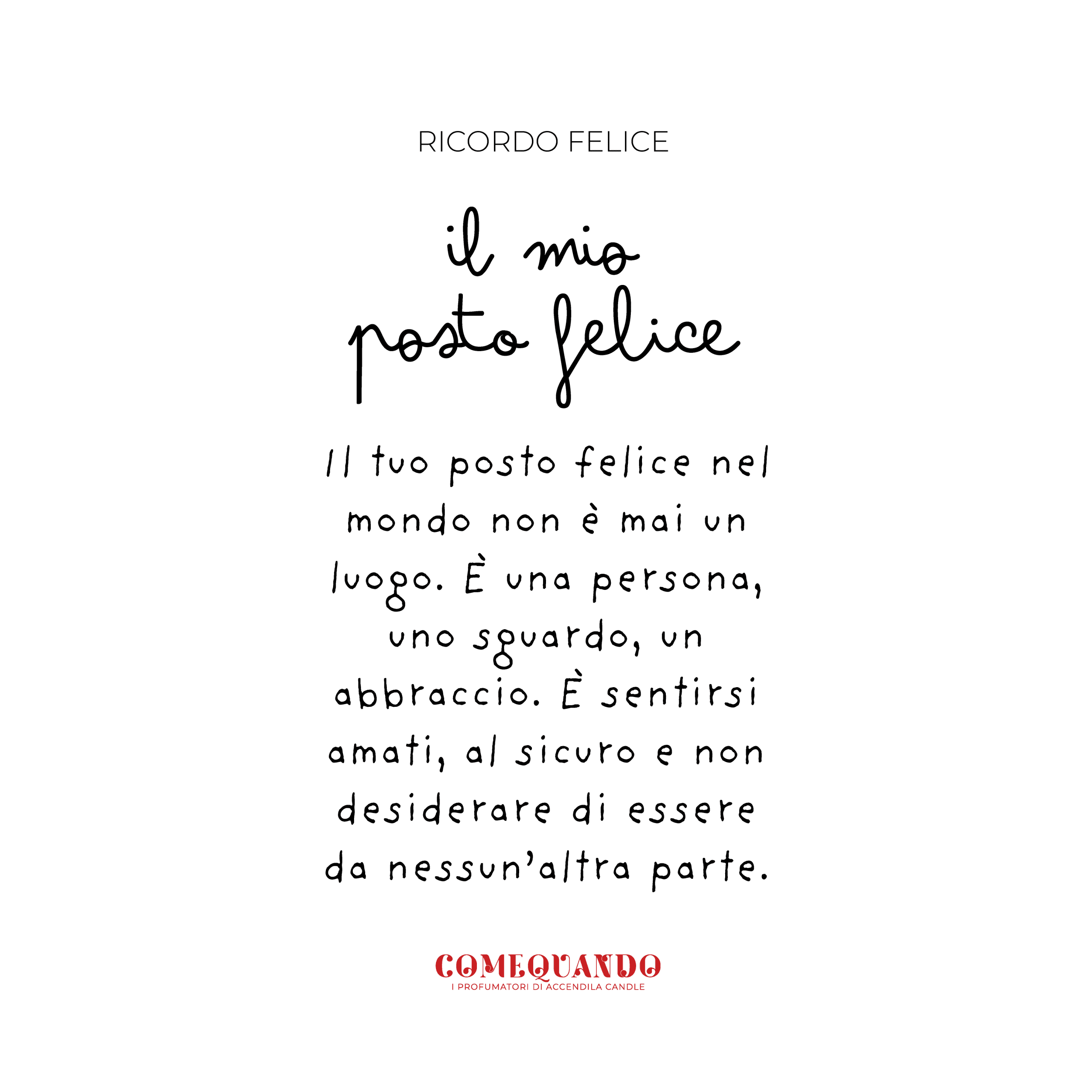 Il tuo posto felice nel mondo non è mai un luogo. È una persona, uno sguardo, un abbraccio. È sentirsi amati, al sicuro e non desiderare di essere da nessun’altra parte.