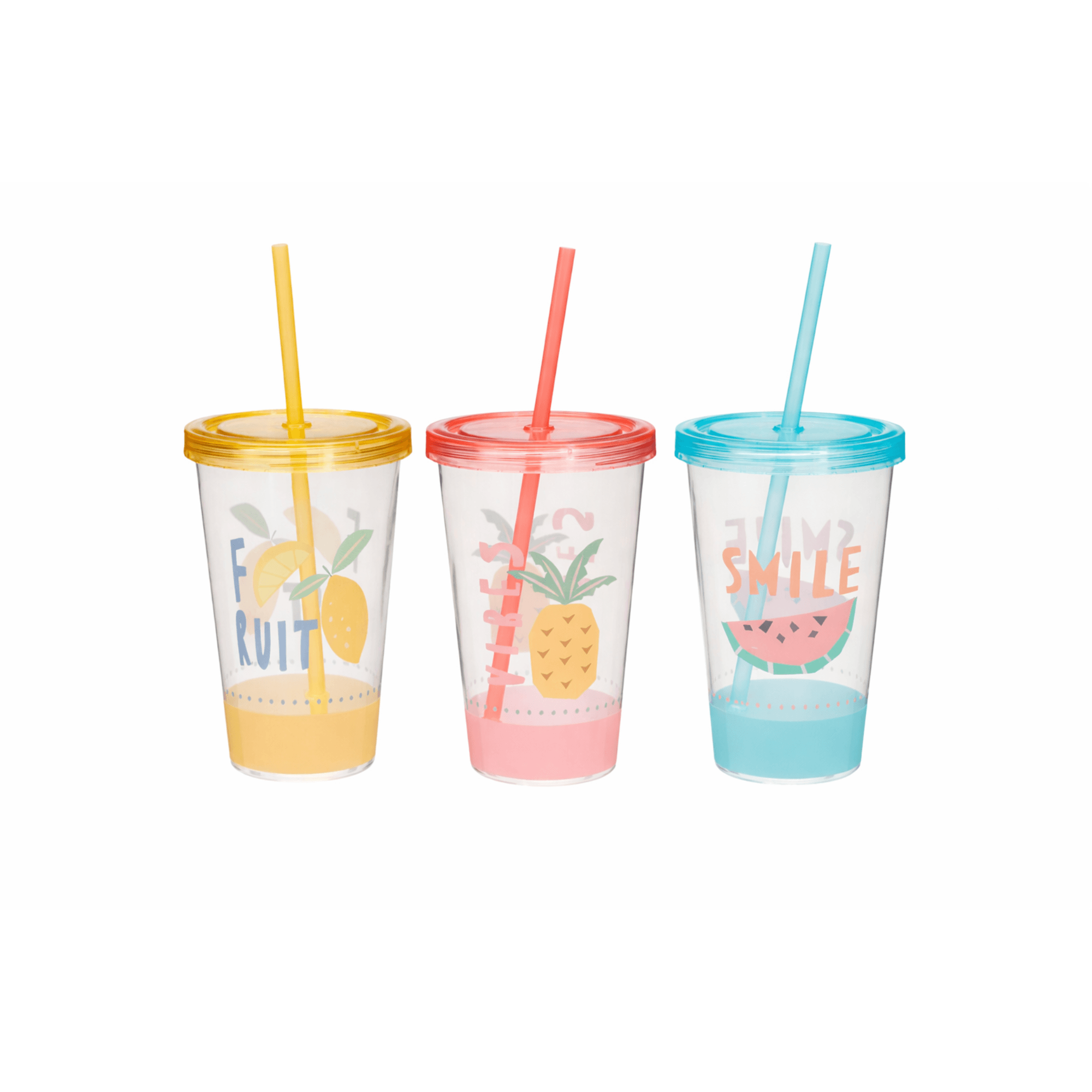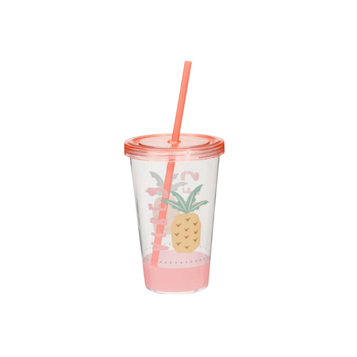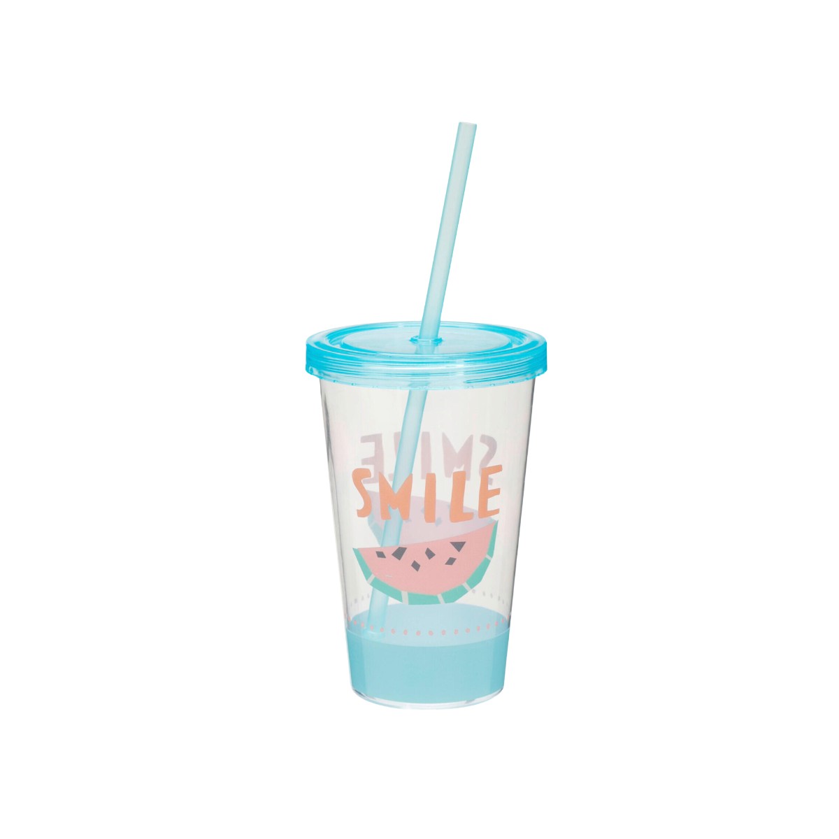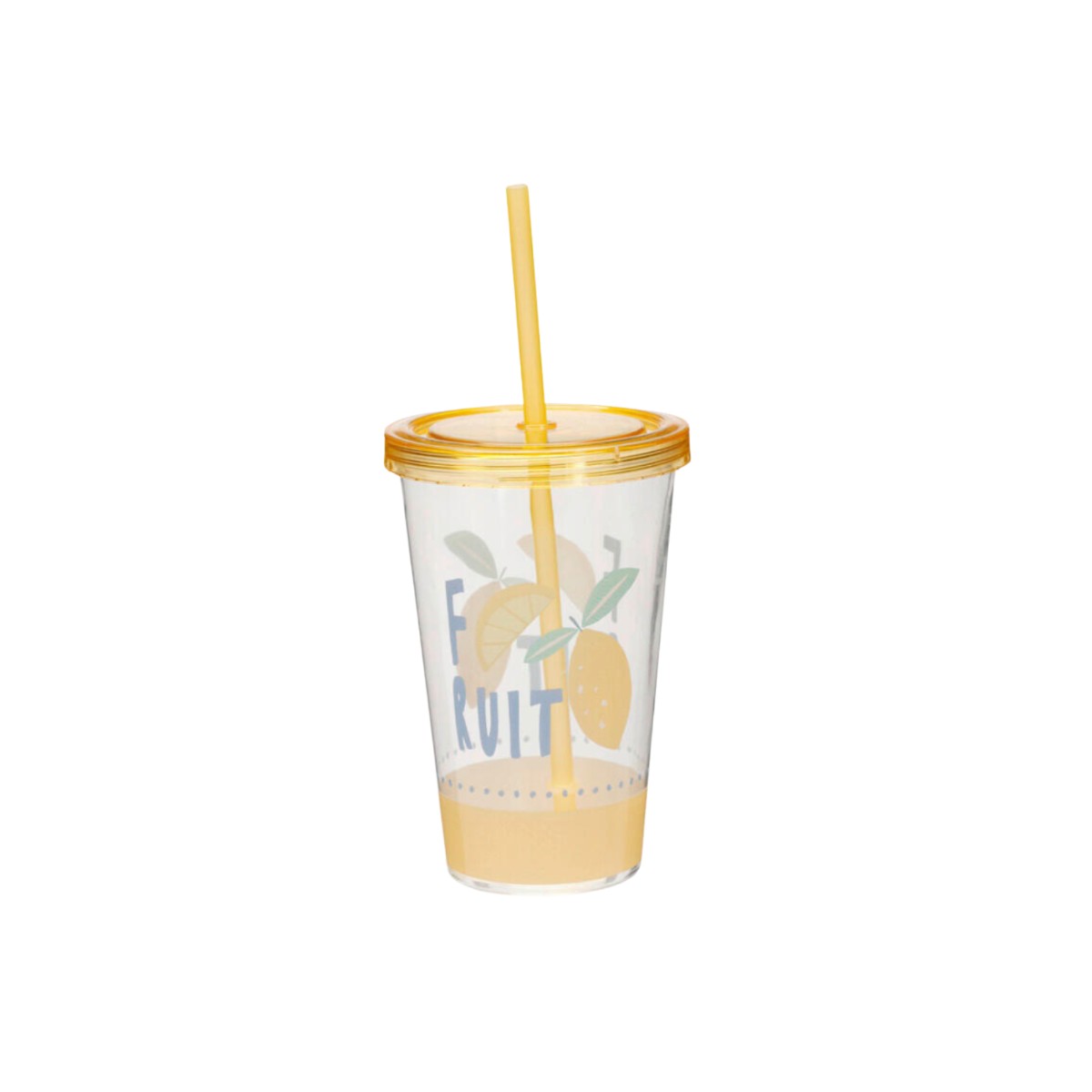 Bicchiere in plastica con coperchio e cannuccia, ideale per gustare bevande fresche in modo pratico e raffinato.
