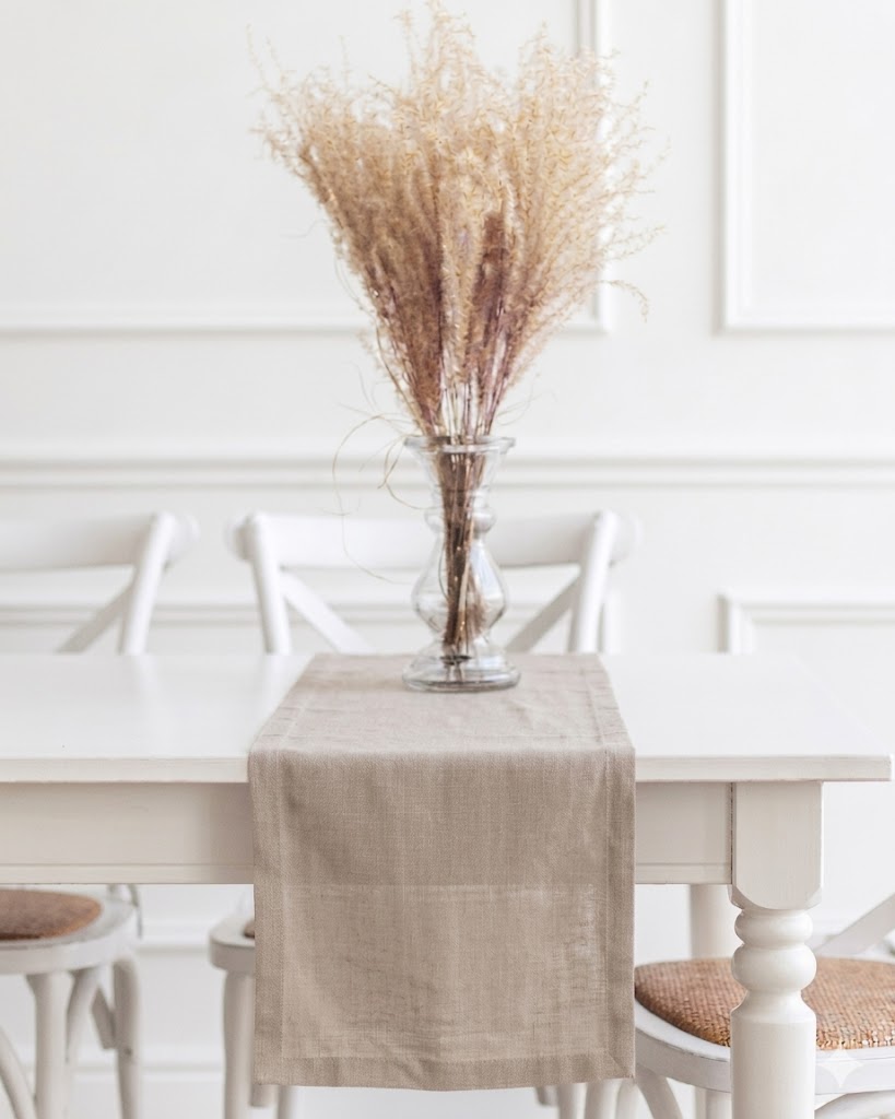Runner da tavola in lino colore beige perfetto per decorare la tavola con semplicità e naturalezza.