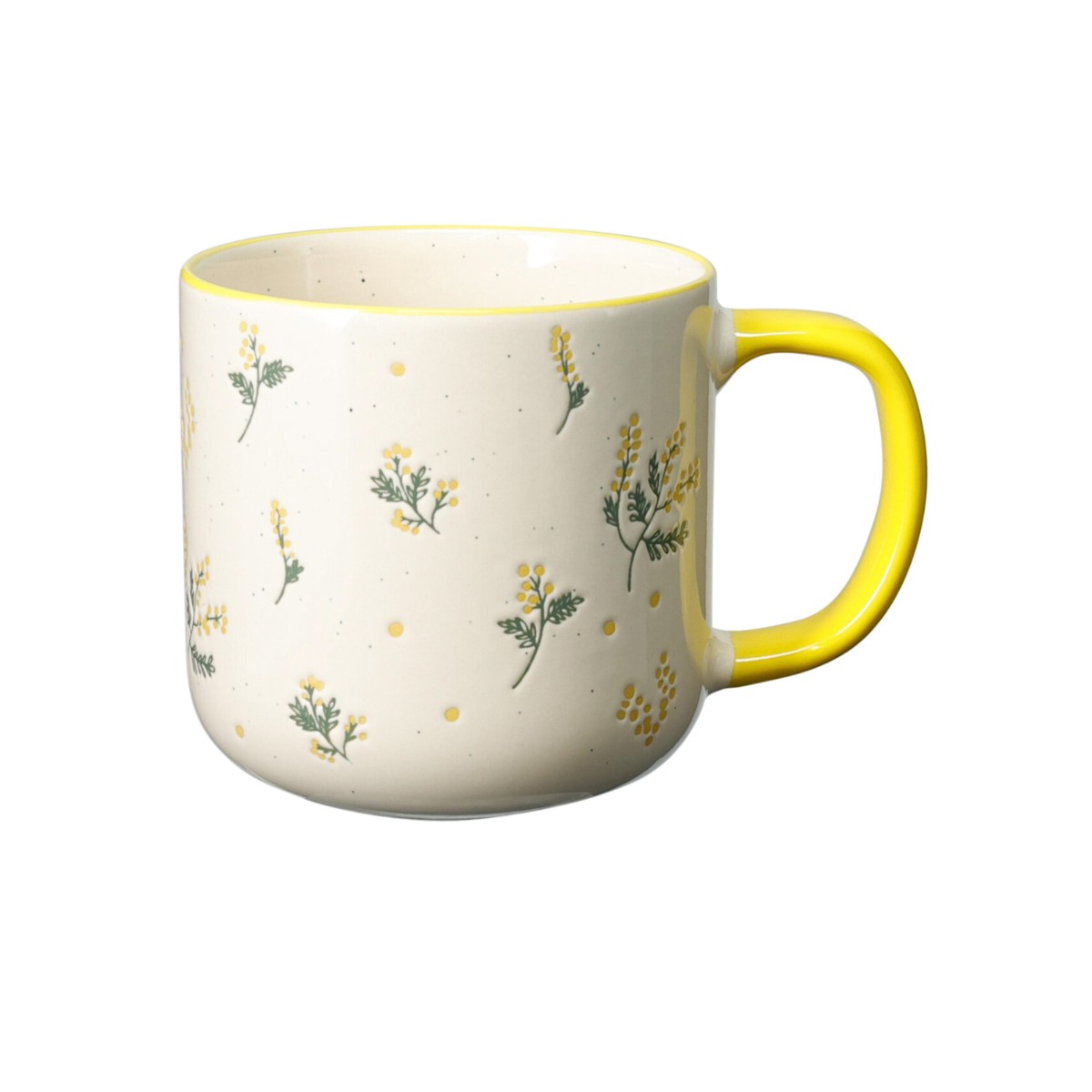 Tazza in ceramica con un elegante disegno a fiorellini, ideale per rendere ogni pausa più dolce e rilassante.