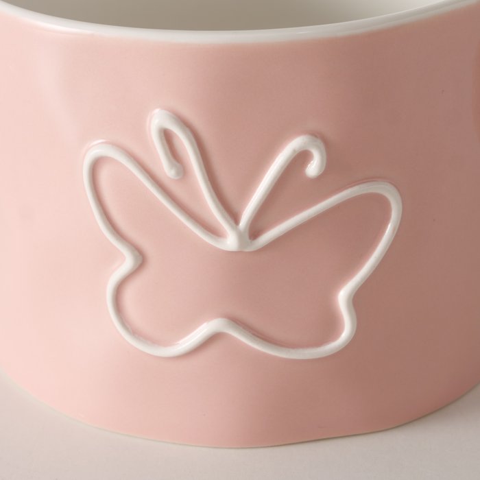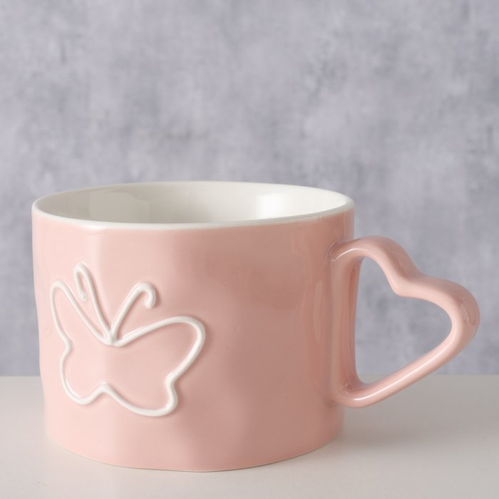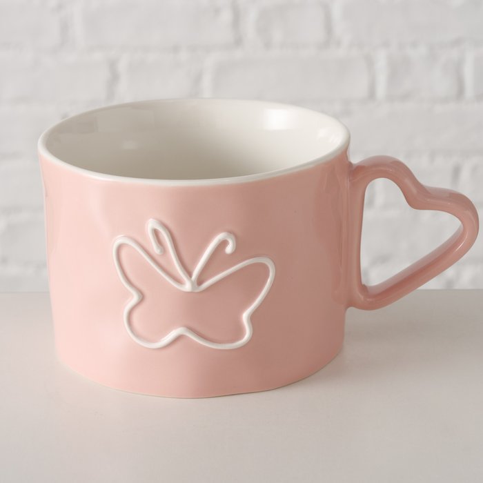 Tazza in ceramica decorata con un delicato disegno di farfalla, ideale per aggiungere un tocco di eleganza e colore alla tua colazione o pausa caffè.