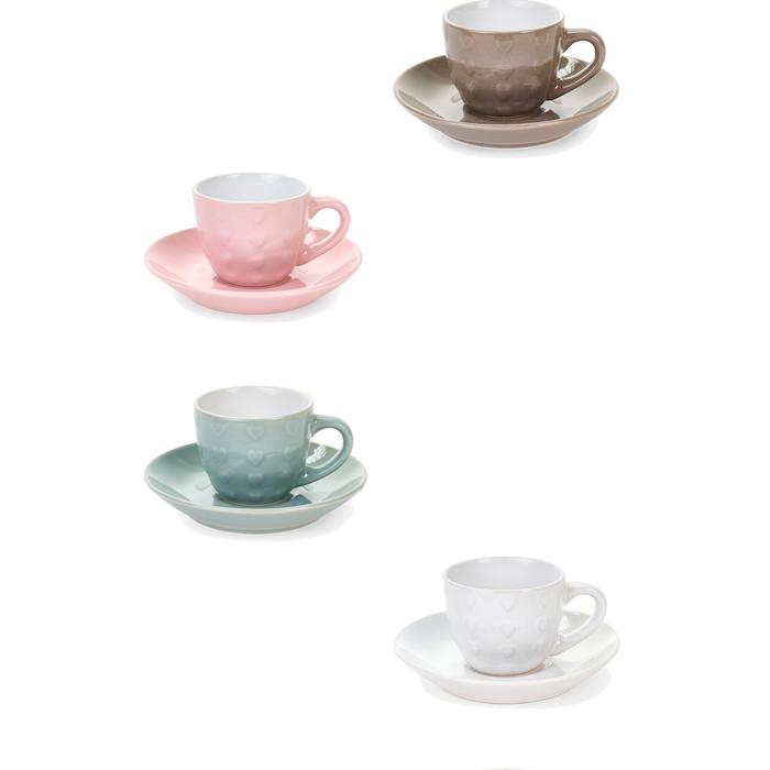 Le tazzine sono assortite in due tonalità (3 per colore) e disponibili in due varianti di confezione: bianco e verde oppure rosa e tortora.