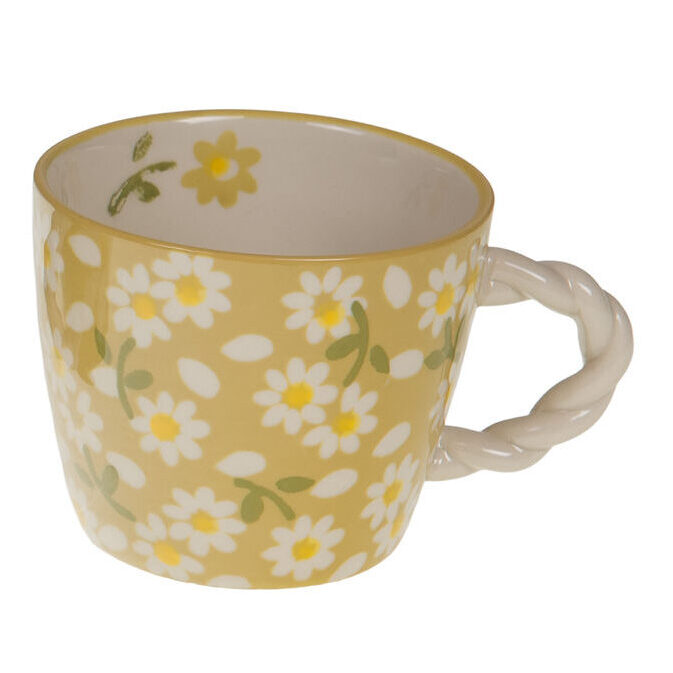 Tazza mug in ceramica con decorazione a margherita, perfetta per colazione, cappuccino o tisane con un tocco fresco e primaverile.