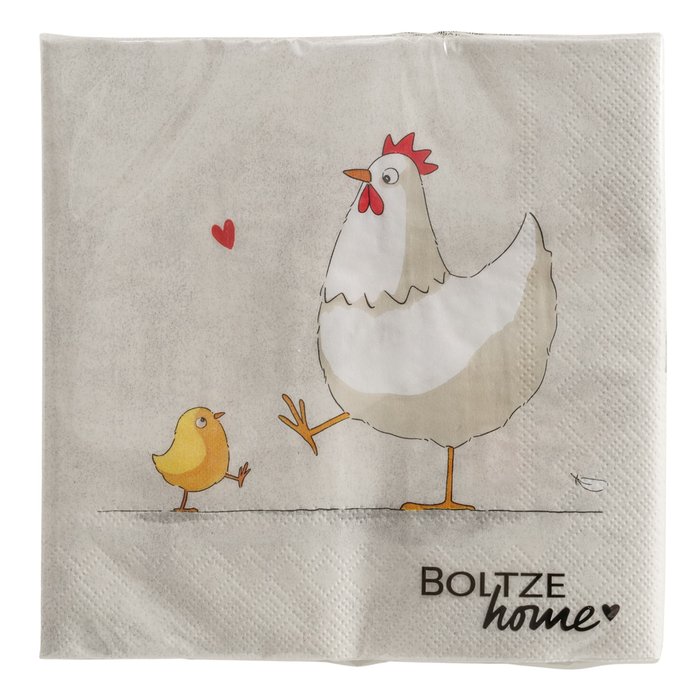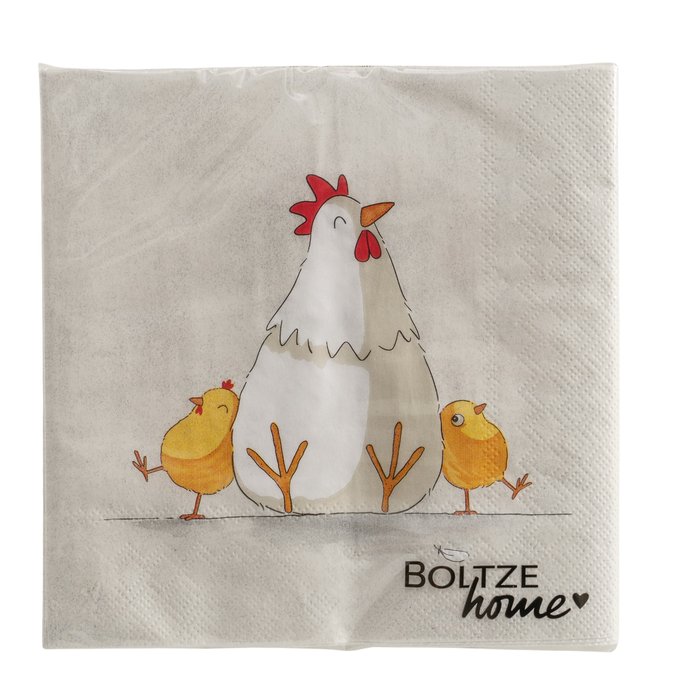 Tovaglioli in carta con simpatica decorazione di gallina e pulcini, perfetti per rendere la tavola primaverile più allegra e curata.
