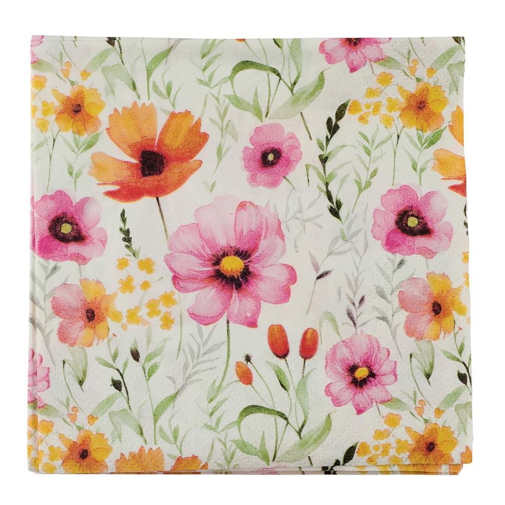 Tovaglioli in carta con delicata fantasia floreale, perfetti per rendere la tavola più colorata e curata durante pranzi, cene o occasioni speciali.